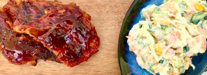 Oko 250g Fall-off-the-bone R&B Baby Back Ribsa i savršena Colaslaw salata! Around 250g Fall-off-the-bone R&B Baby Back Ribs and finest coleslaw salad!